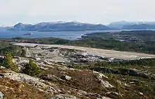 Kristiansund Airport (Norwegian: Kristiansund lufthavn; IATA: KSU[3], ICAO: ENKB) is an international airport serving Kristiansund, Norway. It is situated at Kvernberget on the island of Nordlandet and is the sole scheduled airport serving Nordmøre. The airport features a 2,390-meter (7,840 ft) runway aligned 07/25. In addition to scheduled services operated by Scandinavian Airlines and Widerøe, it serves offshore helicopter traffic to the Norwegian Sea operated by CHC Helikopter Service. Kvernberget handled 314,084 passengers in 2018.