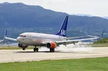 The busiest route is provided by Scandinavian Airlines, which operates four daily round trips to Oslo using Boeing 737 aircraft. Flights along the West Coast to Bergen are provided by Widerøe using Bombardier Dash 8 aircraft.[11] CHC Helikopter Service operates out of Kristiansund Airport to nine offshore oil platforms in the Norwegian Sea.[23] There are also some seasonal charter services.[11] Operation of the airport ran at a deficit of NOK 23 million in 2012.[24] In 2018, Kvernberget airport served 314,084 passengers and had 10,441 aircraft movements.[2]
