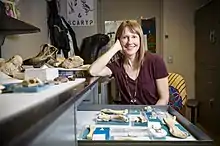 Kristina "Kristi" Curry Rogers (born June 20, 1974) is an American vertebrate paleontologist and a professor in Biology and Geology at Macalester College.[1] Her research focuses on questions of dinosaur paleobiology, bone histology, growth, and evolution, especially in a subgroup of sauropods called Titanosauria. She has named two dinosaur species from Madagascar, Rapetosaurus,[2] the most complete Cretaceous sauropod and titanosaur found to date, and Vahiny, so far known only from a partial skull. She and Jeffrey A. Wilson co-authored The Sauropods, Evolution and Paleobiology, published in December 2005.[3] Her research includes field work in Argentina, Madagascar, Montana, South Africa, and Zimbabwe.