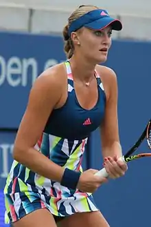 At the start of the year, Mladenovic linked up with Biljana Veselinovic but they split just before Wimbledon and since then she had been coached by Thierry Ascione.[5] She claimed her first WTA Tour title of any type in Montreal when she and Klaudia Jans-Ignacik won the doubles title at the Rogers Cup.[19] Mladenovic made it through to the third round of the US Open by defeating Pavlyuchenkova.[20] At the Bell Classic in Québec, she reached her first WTA semifinal.[21] With Tatjana Malek, Mladenovic won her second WTA Tour doubles title at the Bell Classic.[22] Following her run to the semifinals, she entered the top 100 in the rankings for the first time.[23] Mladenovic won the first ever WTA 125 event, the Taipei Ladies Open, and took the doubles crown as well.[24]