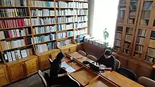 The library was established first with publications from inheritances, and then, through various purchases, donations and book exchanges.[1] The library moved to its current location in 1994, where in addition to more than 10,000 books, the latest scientific periodicals are available. The volumes contain mainly the basic works of Hungarian and universal ethnography, but they also include works of social science (anthropology, sociology, history, linguistics, local history, literature). The bequests of renowned Transylvanian ethnographers (Károly Kós Jr., Jenő Nagy, Judit Szentimrei, Olga Nagy, József Faragó etc.) make up a very valuable part of the library. The books can be read in the two reading rooms available. The accessible stock is constantly expanding through contacts with institutions and publishers in the Carpathian Basin, and the results of scientific literature and researches are constantly enriching the library.[2][13] Since 2007 the library catalog is available on the Society's website, where the most important information about the items (author, editor, title, publisher, place of publication) can be searched.[14]