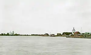 The Nativity Church[10] was built at the end of the 18th century (approximately in 1790) in Krokhino settlement (Belozersky District of Vologda Oblast). The church was at the water's edge on the coast of Lake Beloye, at the origin of the Sheksna River.