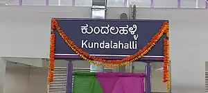 Kundalahalli is an elevated metro station on the East-West corridor of the Purple Line of Namma Metro in Bengaluru, India. Around this station, holds the SAP Labs India followed by some locations like Fortune Select Trinity Hotel, Ginger Bangalore and many more.[1][2][3]