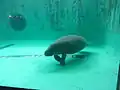 There is a manatee exhibition featuring manatees given to the aquarium by the Mexican government and a sea turtle exhibition.[44][45] A spawning ground dedicated to sea turtles is set up in the exhibition facility.[46] West Indian manatees have also given birth in the facility.[47]