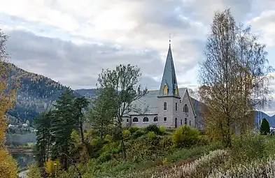 Kviteseid Church (Norwegian: Kviteseid kyrkje) is a parish church of the Church of Norway in Kviteseid Municipality in Vestfold og Telemark county, Norway. It is located in the village of Kviteseid. It is the main church for the Kviteseid parish which is part of the Øvre Telemark prosti (deanery) in the Diocese of Agder og Telemark. The brown, stone church was built in a long church design in 1915 using plans drawn up by the architect Haldor Larsen Børve. The church seats about 320 people.[1][2][3][4]