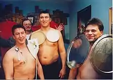 László Harasztosi, also known as Lazlo Hypnotist, is a psychic, bioenergeticist, and alternative medicine practitioner. His speciality is attaching metal objects on human bodies. When breaking the Guinness record in 1998, he placed two disks weighing altogether 57,64 kg (127 lbs) on László Fekete's chest (the strongest man of Hungary[1]).