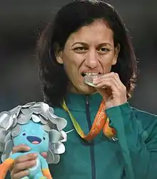 Lúcia da Silva Teixeira Araújo (born June 17, 1981) is a Brazilian female visually impaired judoka (disability class B2) competing in the −57 kg division. Teixeira took a silver medal in the 2012 Summer Paralympics[2] and 2016 Summer Paralympics. In 2016, she was defeated by Inna Cherniak of Ukraine who took the gold medal.[3] She won one of the bronze medals in the women's 57 kg event at the 2020 Summer Paralympics held in Tokyo, Japan.[4]