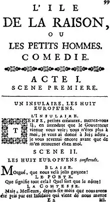 The Island of reason or the little men is a social comedy in three acts and in prose by French playwright Pierre de Marivaux, represented for the first time 11 September 1727 by the Comédie-Française.