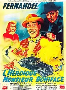 The Heroic Monsieur Boniface (French: L'Héroïque Monsieur Boniface) is a 1949 French comedy film directed by Maurice Labro and starring Fernandel, Andrex, Gaston Orbal and Liliane Bert.[1] It was shot at the Photosonor Studios in Paris. The film's sets were designed by the art director Jacques Colombier. It was followed by a 1951 sequel The Sleepwalker.