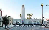 Hanson did not want the film to be an exercise in nostalgia, and so had Spinotti shoot it like a contemporary film, and used more naturalistic lighting than in a classic film noir.[18] He told Spinotti and the film's production designer Jeannine Oppewall to pay great attention to period detail, but to then "put it all in the background".[12] L.A. Confidential was shot at the Linda Vista Community Hospital in the Los Angeles area.[19][20] Several famous Hollywood landmarks appropriate to the 1950s were used, including the Formosa Cafe in West Hollywood, the Frolic Room on Hollywood Boulevard, and the Crossroads of the World, an outdoor shopping mall dressed as a movie theatre where the premiere of When Worlds Collide takes place at the beginning of the film.[21]