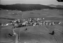 In the 17th century, "La Brévine" was used solely to refer to the village. It was not until the 18th century that the name was used to refer to the municipality. The hamlet of Bémont was first mentioned in 1266 as Bemont, and Les Taillères was first mentioned in 1304 as Chaul de Estaleres.[3] In the mid-1600s, iron carbonate was discovered in parts of La Brevine. In the middle of the 19th century, baths were built there, thanks to a subsidy by King Frédéric-Guillaume IV of Prussia, who was then still Prince of Neuchâtel. Today, the baths are no longer functioning.[4]