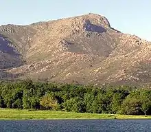An urban legend says that it can be seen in the final scene of the film A Fistful of Dollars by Clint Eastwood, but in reality the mountain that appears is El Picazo, belonging to the Sierra del Hoyo.[8]
