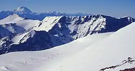 Cerro La Mesa or La Mesa or Cerro de la Mesa is a mountain in the Cordillera de la Ramada range of the Andes, in Argentina.[6] It has a height of 6,180 metres (20,276 ft). La Mesa means table in Spanish. The name of the mountain comes its flat and long summit ridge (there are six summits, the 6200m being the highest). Despite the dry climate of the area, there are significant glaciers flowing down the southern and the eastern flank of the mountain. Its slopes are within the administrative boundaries of the Argentinean city of Calingasta, Province of San Juan.[7]