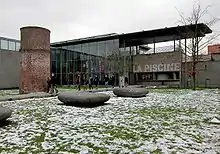 The swimming pool was constructed between 1927 and 1932,[1] by the Lille architect Albert Baert. It closed as a swimming pool in 1985, and was remodelled as a museum by the architect Jean-Paul Philippon, opening in 2000. A modern entrance building, special exhibition space and garden were constructed within the roof-less shell of an adjoining textile factory.[2][3]