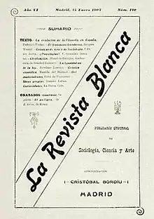 La Revista Blanca was a Spanish individualist anarchist magazine of sociology and arts published in Madrid by Joan Montseny (Federico Urales) and Teresa Mañé (Soledad Gustavo) from 1898 to 1905 and in Barcelona from 1 June 1923 till 15 August 1936.