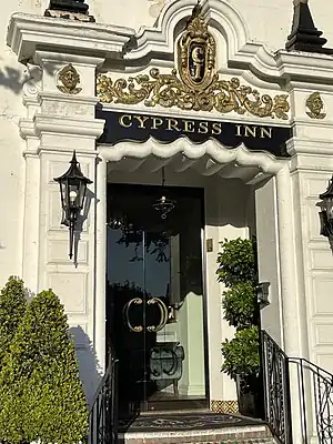 La Ribera kept its original name until the 1960s, when Earl E. McInnis took over management and renamed it the Cypress West hotel. In the mid-1980s, businessman Denny LeVett and actress Doris Day restored the hotel and reopened it as the Cypress Inn.[9] It was an early pet–friendly hotel that was featured on March 15, 1999, in the Architectural Digest.[10]