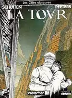 La Tour is a graphic novel by Belgian comic artists François Schuiten and Benoît Peeters, the third volume of their ongoing Les Cités Obscures series. It was first published in serialized form in the Franco-Belgian comics magazine À Suivre (#96-106), and as a complete volume first in 1987 by Casterman. In English, it was published as The Tower (Stories of the Fantastic) in 1993 by NBM Publishing, and as The Tower in 2022 in a new translation by IDW Publishing.