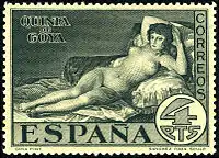 Loud protests were heard complaining that the 'naked' stamp [of Goya's The Naked Maja] would corrupt innocent children who collected stamps.
