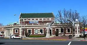 Listed as the Montclair Railroad Station, it was added to the National Register of Historic Places on January 8, 1973, for its significance in architecture and transportation.[8] There were three main reasons that the station was considered to be qualified for the National Register. One was its architectural significance, including the overall design, the tapestry bond brickwork, the marble concrete trim, the interior brick and tile work and ornamentation, the iron work in the ticket windows. Next factor was the importance of the architect, William Hull Botsford and finally, its importance as a transportation center in the history of Montclair Township.[9]
