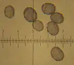 The spores are roughly spherical to broadly elliptical, and measure 7–11 by 7–8 µm. They are ornamented with warts and ridges that sometimes form a partial reticulum (a pattern of interconnected ridges), with prominences up to 1 µm high. The spore are hyaline (translucent) and amyloid, meaning that they will absorb iodine when stained with Melzer's reagent. The cap cuticle of young specimens is made of a tissue type known an ixotrichoderm, which contains gelatinized hyphae of different lengths arranged in roughly parallel fashion. As the mushroom matures, the cap cuticle gradually becomes an ixolattice—characterized by branching, entangled, gelatinous hyphae.[5] The basidia (the spore-bearing cells) are four-spored, and measure 45–52 by 9–10.5 µm. The pleurocystidia (cystidia on the gill face) are abundant, and relatively long—between 60 and 140 µm long by 6–14 µm thick. The cheilocystidia (cystidia on the gill edge) measure 32–67 by 6–9 µm.[1]