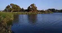 Laguna Lake a lake and seasonal reservoir in the upper Los Osos Valley, in San Luis Obispo, California. It lies at an elevation 121 feet (37 m). It is supplied with water from various small watercourses from the surrounding valley but especially by Prefumo Creek a tributary of San Luis Obispo Creek that enters the lake at 35°15′51″N 120°41′32″W / 35.26417°N 120.69222°W. The Lake is also drained by Prefumo Creek at from its eastern end at 35°15′35″N 120°41′01″W / 35.25972°N 120.68361°W that drains to San Luis Obispo Creek.[1]