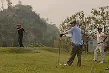 General Sumlut Gun Maw of the Kachin Independence Army founded the club in 2004 after playing golf at a reconciliation conference in Yangon.[1] The site is by the river which forms the frontier with China.[1] There was formerly a village there but this was destroyed by flooding in 1991.[1] The course was designed by a professional golfer from Myitkyina, Nay Min.[2][1] Six holes were constructed, starting in 2006, and there are plans to add three holes.[1] This golf course is open to the public for use even during war time. The course consists of 6 holes.