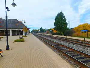 Lake Forest is a railroad station in Lake Forest, Illinois, served by Metra's Milwaukee District North Line. The station is located on 10205 North Waukegan Road (IL 43), and is 28.4 miles (45.7 km) away from Chicago Union Station, the southern terminus of the line.[2] In Metra's zone-based fare system, Lake Forest is in zone F. As of 2018, Lake Forest is the 82nd busiest of Metra's 236 non-downtown stations, with an average of 607 weekday boardings.[1]