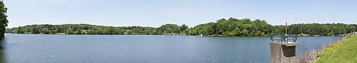 Lake Logan was created with the construction of Lake Logan Dam in 1955. Upon completion of the Dam the area was administered by the Ohio Department of Natural Resources (ODNR) Division of Wildlife.[4] Lake Logan Dam feeds Clear Fork Creek, a tributary of the Hocking River. The lake was originally known as Hocking Lake but was later re-named Lake Logan, which avoided confusion with Hocking Hills State Park located just miles away to the south east. The 400-acre (160 ha) lake contains many different kinds of fish. The new name also acknowledged the Native American heritage of the region. A valid Ohio Fishing license is required to fish in Lake Logan.[4]
