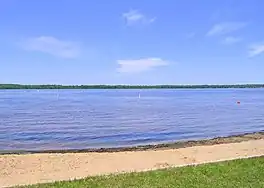 Over 270 homes and four resorts are located on the shorelines of Lake Noquebay. Since 1975 the Lake Noquebay Rehabilitation District manages the plants, pollution run-off, and water quality of the lake. Their responsibilities also include the operations and maintenance of the dam. Their efforts have greatly reduced the phosphorus runoff from nearby farmlands.[1] Historical data show that for several decades phosphorus levels have been increasing with an unknown cause. Phosphorus levels in 2018 were 25–30 μg/L (1.1×10−5–1.4×10−5 gr/U.S. fl oz). The aquatic ecosystems of northeast Wisconsin, phosphorus water levels average about 19 micrograms per liter. A nutrient study had been planned for 2018 by the Lake Rehabilitation District to measure the amounts of phosphorus entering the aquatic system and possibly locate the source. The study could take three years to complete and will be partly funded by Wisconsin DNR Lake Management Planning program grant.[24] In June 2020, PFAS-contaminated biosolids were tested in water wells of nearby agricultural fields, which seem to be approaching Lake Noquebay. Four water wells in the area had samples reflecting detection levels above 20 parts per trillion of PFOA and/or PFOS. Two additional water wells had PFAS positive detections that show levels between reporting limit and 20 parts per trillion. Although, these were detected nearby, actual testing of Lake Noquebay was not determined at that time.[25]
