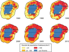 Between 2010 and 2022 the surface area of Lake Victoria increased by 15%[30] flooding lakeside communities.[31]