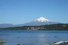 ![]() Vie of Lake Villarrica from the eponymous town. Villarrica Volcano is seen in the background. | |