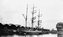 In August 1897, Lalla Rookh put into Port Jackson, New South Wales, in distress, on a voyage from Calcutta, India, to Antofagasta in Chile, after being damaged in a hurricane south of the equator.[5] She was taken to Mort's Dock for repairs.[6] It was reported that it would take some time to repair and refit the British ship.[7]
