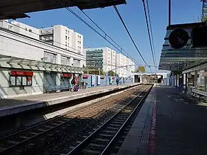 Starting in 1947, the narrow-gauge railway companies that operated within the Bilbao metropolitan area were merged to become Ferrocarriles y Transportes Suburbanos, shortened FTS and the first precedent of today's Bilbao metro. In 1977, the FTS network was transferred to the public company FEVE and in 1982 to the recently created Basque Railways.[4] In the 1980s it was decided the station, just like most of the former railway line, would be integrated into line 1 of the metro. The old station building was demolished and new station opened as part of the metro network on 11 November 1995.[5]