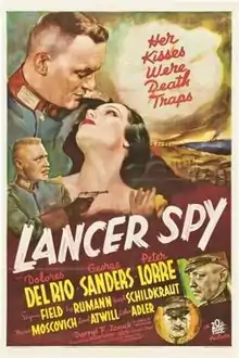 Lancer Spy is a 1937 American thriller film directed by Gregory Ratoff and starring Dolores Del Rio and George Sanders. Its plot concerns an Englishman who impersonates a German officer and a female German spy who falls in love with him.