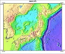 Relief refers to the difference in elevation within a landscape; for example, flat terrain would have "low relief", while terrain with a large elevation difference between the highest and lowest points would be deemed "high relief". Most land has relatively low relief.[41] The change in elevation between two points of the terrain is called a slope or gradient. A topographic map is a form of terrain cartography which depicts terrain in terms of its elevation, slope, and the orientation of its landforms. It has prominent contour lines, which connect points of similar elevation, while perpendicular slope lines point in the direction of the steepest slope.[42] Hypsometric tints are colors placed between contour lines to indicate elevation relative to sea level.[43]