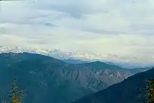 Landour offers striking views of the Garhwal Himalaya, with a wide vista of up to 200 km (120 mi) visible on a clear day. The visible massifs and peaks include (West to East) Swargarohini, Bandarpunch, Yamunotri, Jaonli, Gangotri, Srikanta, Kedarnath, Satopanth, Chaukhamba (Badrinath) and even Nanda Devi. At its closest point, Tibet is about 70 miles (110 km) away as the crow flies; it is through Landour that Heinrich Harrer escaped to Tibet during World War II after breaking out of a British internment camp in Dehradun.