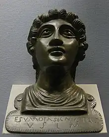 Votive bust (late 1st century AD) with the Gaulish name Esumopas Cnustious and the Latin abbreviation VSLM (votum solvit libens merito, "fulfilled his vow freely, as is deserved")