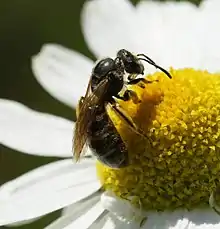 Lasioglossum calceatum is a Palearctic species of sweat bee.[1][2] The species is socially polymorphic, with northern populations being solitary while southern populations exhibit eusocial behavior. [3]