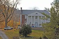 Lauderdale is a historic home located near Buchanan, Botetourt County, Virginia. Lauderdale takes its name from the eighteenth century owner of the property, James Lauderdale Sr. Lauderdale purchased 366 acres on Looney Mill Creek in 1749. By the early 1780s, he owned over a thousand acres in Botetourt County, and in 1785 he was listed as the owner of a dwelling and three other buildings. The home Lauderdale was built in 1790 by James Lauderdale Sr.[3] Lauderdale Sr. settled in the area in 1730, when the region was still in the possession of the Indians. The mansion 'Lauderdale' was built near a spring, near which it is said that Lauderdale shot and killed an Indian during an attack on his home. The plantation consisted of 1200 acres, Lauderdale is one of the largest houses in Botetourt. There are thirty rooms within its walls. The high ceilings and hand carved woodwork of the immense hallway, library, and drawing room make it one of the handsomest houses is Virginia. The bricks on its walls were made by slaves on the place. In 1796, Lauderdale sold 444 acres, including his residence to Col. Henry Bowyer (ca. 1760–1832).[4] Most references to Lauderdale incorrectly show the date of its construction as 1821, yet the Botetourt County Deed Book VI, page 36, clearly shows the subsequent owner of the mansion from Lauderdale's son, James Lauderdale Jr., a Col. Henry Bowyer, having purchased the home in 1796.