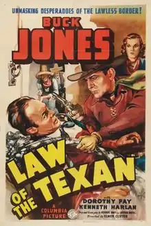Law of the Texan is a 1938 American Western film directed by Elmer Clifton and written by Monroe Shaff and Arthur Hoerl. The film stars Buck Jones, Dorothy Fay, Kenneth Harlan, Don Douglas, Matty Kemp and Joe Whitehead. The film was released on October 24, 1938, by Columbia Pictures.[1][2][3]