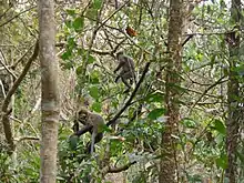 The western hoolock gibbon (Hoolock hoolock) is a higher primate found in India. It is one of the top 25 most endangered primates and one of the six non-human primate species found in Lawachara.[8] In a census in 2007, only 62 individuals in 17 groups were found in Lawachara and in the greater West Bhanugach Reserved Forest.[9] Yet this is the biggest surviving gibbon population in Bangladesh. The Lawachara population is considered of critical importance as it is likely to be the last viable population of western hoolock gibbons that will survive into the next century.[7]