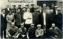 Poltavskaya sabotaged and resisted collectivization period of the Soviet Union more than any other area in the Kuban which was perceived by Lazar Kaganovich to be connected to Ukrainian nationalist and Cossack conspiracy.[17] Kaganovich relentlessly pursued the policy of requisition of grain in Poltavskaya and the rest of the Kuban and personally oversaw the purging of local leaders and Cossacks. Kaganovich viewed the resistance of Poltavskaya through Ukrainian lens delivering oration in a mixed Ukrainian language. To justify this Kaganovich cited a letter allegedly written by a stanitsa ataman (local Cossack leader) named Grigorii Omel'chenko advocating Cossack separatism and local reports of resistance to collectivization in association with this figure to substantiate this suspicion of the area.[17] However Kaganocvich did not reveal in speeches throughout the region that many of those targeted by persecution in Poltavskaya had their family members and friends deported or shot including in years before the supposed Omel'chenko crisis even started. Ultimately due to being perceived as the most rebellious area almost all (or 12,000) members of the Poltavskaya stantisa were deported to the north.[17] This coincided with and was a part of a wider deportation of 46,000 Cossacks from Kuban.[18] At the same time, Poltavskaya was renamed Krasnoarmeyskaya (Красноарме́йская).[19]