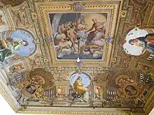 Pantaleone's sons: Aurelio, Marcantonio, Benedetto, and Felice; also became painters. Of these, Marcantonio Calvi was the most distinguished painting with his brothers decorations in palazzo Doria, and by himself in Pegli, San Pietro d'Ancona, and other palaces of Liguria, including the loggia degli Spinola. He then moved to Venice. The brothers painted in the Convent of Gesu e Maria in Genoa, and in the church of Santa Caterina.[4]