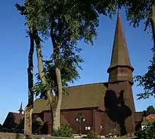 The Church of the Exaltation of the Holy Cross in Leśno dates back as far as 1643 and has the highest wooden tower in Poland. First mentioned in 1534 as the church of Saint Katarzyna, the historical work Ad Historiam Ecclesiasticam Pomeraniae states that it was refounded and given its present name by Queen Marie Louise Gonzaga of Poland circa 1642.[9]
