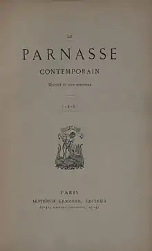Le Parnasse contemporain ("The Contemporary Parnassus", e.g., the contemporary poetry scene) is composed of three volumes of poetry collections, published in 1866, 1871 and 1876 by the editor Alphonse Lemerre, which included a hundred French poets, such as Leconte de Lisle, Théodore de Banville, Heredia, Gautier, Catulle Mendès, Baudelaire, Sully Prudhomme, Mallarmé, François Coppée, Charles Cros, Nina de Callias, Léon Dierx, Louis Ménard, Verlaine, Villiers de L'Isle-Adam and Anatole France.