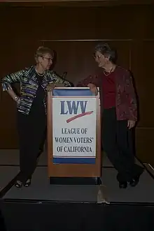 The League of Women Voters of California is a nonpartisan organization that is a part of the national League of Women Voters founded by Carrie Chapman Catt in the 1920s. The league was formed from the National American Women's Suffrage Association. Their stated goals are to encourage "informed and active participation in government," "increase understanding of major public policy issues," and influence "public policy through education and advocacy."[1] The league has over 65 county groups within the state.[2]