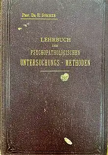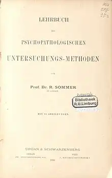 Lehrbuch der Psychopathologischen Untersuchungs-Methoden (English: Textbook on research methods of psychopathology) is a German book written by Robert Sommer (1864-1937), first published in 1899 by Urban & Schwarzenberg. In its 388 pages, Sommer presents a framework of ideas delving into the core of psychopathological symptoms, employing new analytical techniques and psychophysiological experiments.[1][2]