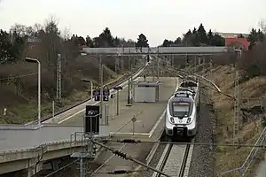 Leipzig Miltitzer Allee (German: Bahnhof Leipzig Miltitzer Allee) is a railway station located in Leipzig, Germany. The station opened in December 1983 and was closed between April 2011 and 15 December 2013. The station is located on the Leipzig-Plagwitz–Leipzig Miltitzer Allee railway. The train services are operated by Deutsche Bahn, as part of the S-Bahn Mitteldeutschland.