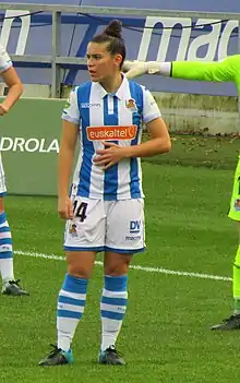 She began her senior career at Oiartzun aged 15,[1] soon being signed by Real Sociedad who added her to their squad immediately – although she was often introduced as a substitute, which occurred in around a quarter of the 200 or so Primera División fixtures she played for the San Sebastián side across eight seasons.[2] She played the entirety of the final and claimed an assist for the winning goal as Erreala claimed their first major honour, the Copa de la Reina in 2018–19,[3] and played an important role in two regional Copa Euskal Herria wins over local rivals Athletic Bilbao in 2019 and 2020.[4][5]