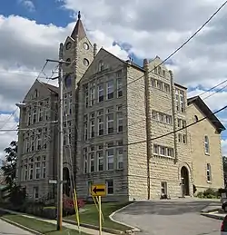 The Lemont Central Grade School is a former school building at 410 McCarthy Road in Lemont, Illinois. The school was built in 1869 to replace Lemont's first school, which opened in 1836 when the area was still largely rural. Locally quarried limestone was used to construct the school; at the time, limestone production was one of the city's main industries. Architect John Barnes of Joliet designed the Victorian building. As the city's population grew considerably during the construction of the Chicago Sanitary and Ship Canal in the 1890s, an annex was placed on the school in 1896 to accommodate additional students. The school operated until building safety issues forced its closure in 1974; at the time, it was the oldest continuously operating school in the state.[2] The building has since been converted to condominiums.[3]